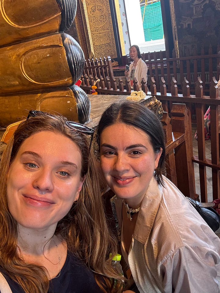 Home to the Reclining Buddha, Wat Pho was the first temple of our trip. Thankfully, during monsoon season, the lines aren’t as lengthy. This meant we could secure VIP pics with Buddha.